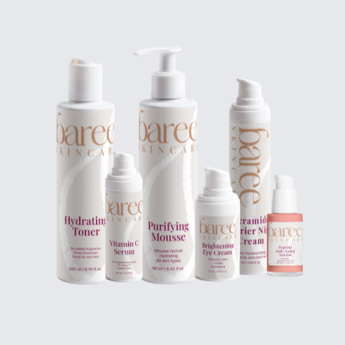 Your all-in-one skincare system from sunrise to bedtime. The AM to PM Complete Routine combines six essentials — Purifying Mousse, Hydrating Toner, Vitamin C Serum, Peptide Serum, Brightening Eye Cream, and Ceramide Barrier Night Cream — for balanced, radiant, and age-defying results, day and night.